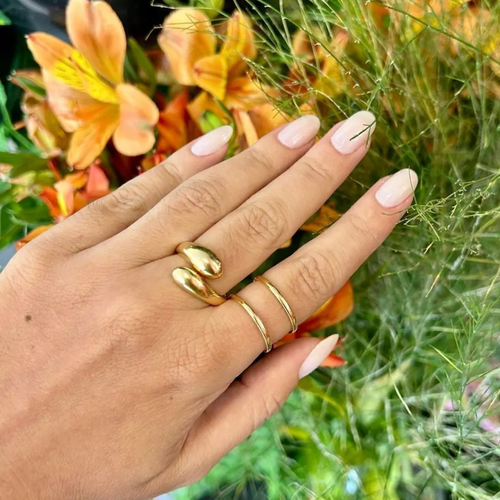 Apresentando nosso Anel Gota Duplo Minimal, uma expressão refinada de sofisticação e design contemporâneo. Cada anel é meticulosamente banhado a ouro 18k, prometendo não apenas um acabamento de alto brilho, mas também a tranquilidade de ser hipoalergênico e livre de níquel. O verniz de proteção adicional assegura a durabilidade e a preservação do brilho intenso, simbolizando a beleza que não se desvanece com o tempo.